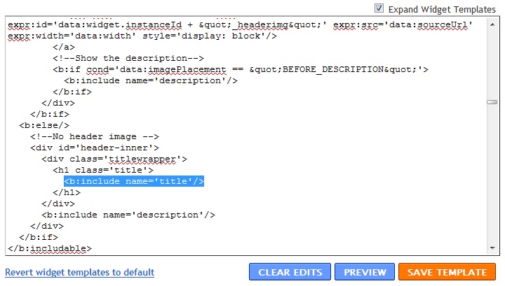 <b:include name='title'/>There will be three places where you'd see this line. You have to make adjustments to all three of them.